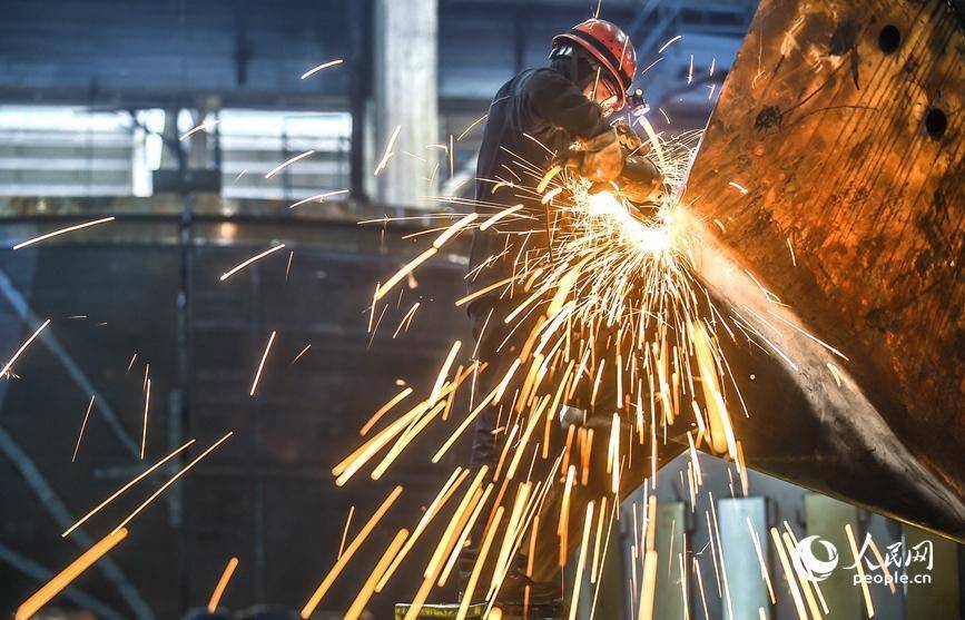 河南省洛阳市的中信重工铆焊车间内,工人正在加工打磨处理一批出口的矿用磨机产品订单。人民网记者 尚明桢摄