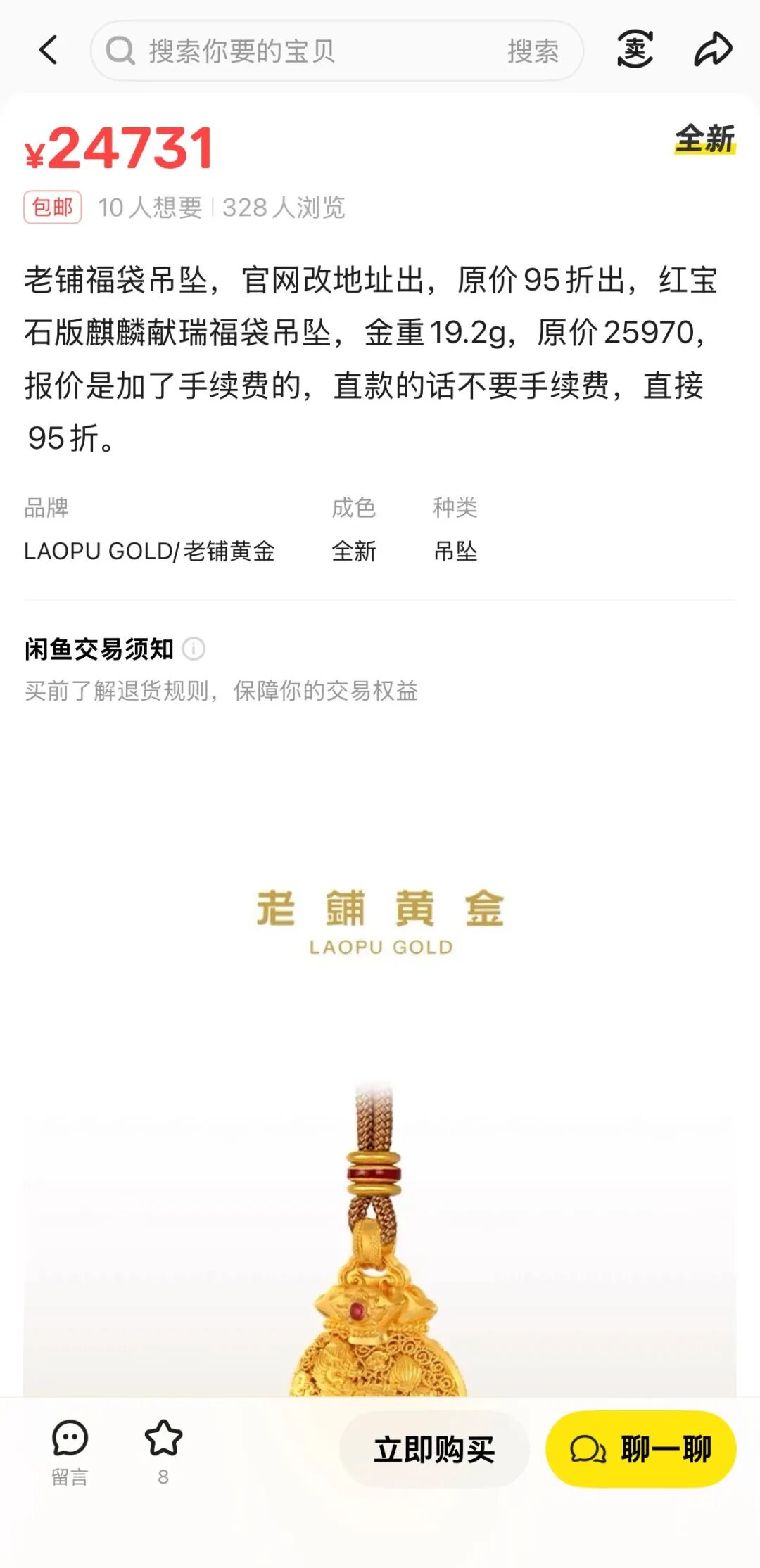 以19.2克的红宝石麒麟福袋吊坠为例,